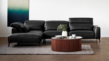 Voluzzi is Italian inspired sophistication! This sofa offers manually adjustable head rests for each seat for additional neck support. The back and seat cushions are fixed. The back cushions are made with hyper-soft foam and cut with special 3D technology to achieve the best comfort and durability. The arms have soft rounded shapes that contribute to the elegance of this sofa. We offer optional lumbar cushions for even more support. The sofa is available with new organic shaped black metal legs that fit the sofa beautifully.