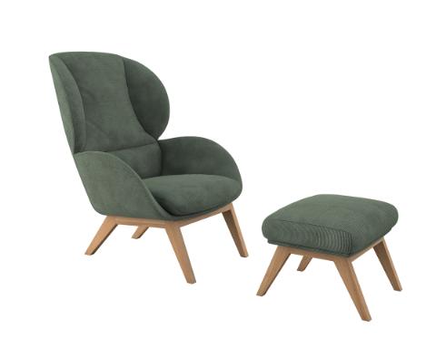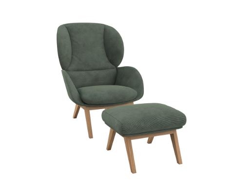 Adria is a great armchair that creates an atmosphere to think, learn and live. No living space is ever truly complete without one. Adria seamlessly blend style and comfort. The Adria chair is beautiful from all angles and with great lumbar support. The armchair is a beautifully crafted design that will work as an iconic piece in your living room. Adria comes with a wooden leg design that emphasises the soft and elegant expression. The matching footstool completes the look and ensures optimal relaxation.