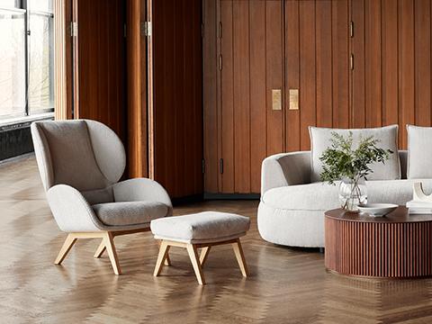 Adria is a great armchair that creates an atmosphere to think, learn and live. No living space is ever truly complete without one. Adria seamlessly blend style and comfort. The Adria chair is beautiful from all angles and with great lumbar support. The armchair is a beautifully crafted design that will work as an iconic piece in your living room. Adria comes with a wooden leg design that emphasises the soft and elegant expression. The matching footstool completes the look and ensures optimal relaxation.