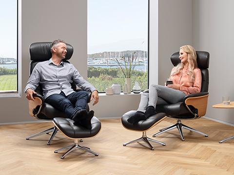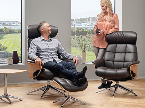 Skagen is designed with a gravity based recline function, adjustable for both height and weight. The dual adjustment mechanism provides you with a natural and stylish retreat, that quickly lets you adjust the angle to your preferred position. The footrest will ensure you a calm place to relax and unwind. The headrest is adjustable in height and angle, to get the best position for reading, watching TV or relaxing.