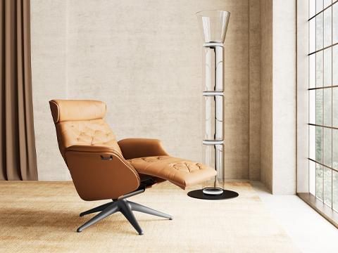 Volden Function is designed with a gas spring mechanism which lets you change positions smoothly and effortlessly. Volden Function has a built-in footrest. The headrest is adjustable in height and angle, to get the best position for reading, watching TV or relaxing. The shell of the chair is available in 3 different plywood surfaces and colors or as fully upholstered. The legs are available in Wood Decor, polished aluminum and black.
