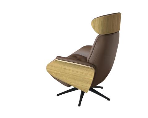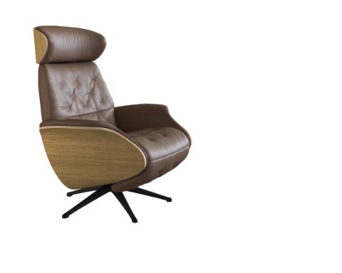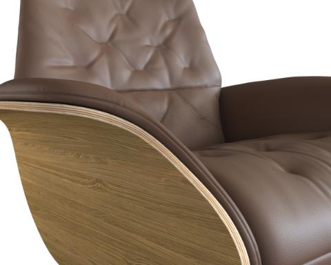Volden Function is designed with a gas spring mechanism which lets you change positions smoothly and effortlessly. Volden Function has a built-in footrest. The headrest is adjustable in height and angle, to get the best position for reading, watching TV or relaxing. The shell of the chair is available in 3 different plywood surfaces and colors or as fully upholstered. The legs are available in Wood Decor, polished aluminum and black.