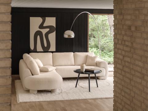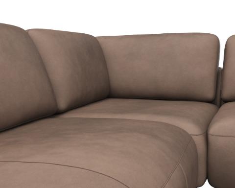 Molino is a modern lounge sofa with a soft, organic shape. The elegant curves of the armrests, seat and the back gives a light and trendy look. Combinations with chaiselong or open-end section additionally have a chunky padded support leg, which also emphasizes the design. The combination of high-quality foam padding, good seating comfort and a nice design is a winner.