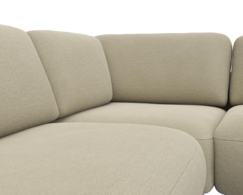 Molino is a modern lounge sofa with a soft, organic shape. The elegant curves of the armrests, seat and the back gives a light and trendy look. Combinations with chaiselong or open-end section additionally have a chunky padded support leg, which also emphasizes the design. The combination of high-quality foam padding, good seating comfort and a nice design is a winner.
