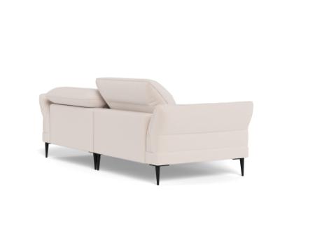 Salino is Italian inspired sophistication! This sofa offers manually adjustable head rests for each seat for additional neck support. The back and seat cushions are fixed. The arms have soft rounded shapes that contribute to the elegance of this sofa. The sofa is available with beautiful organic shaped black metal legs that fit the sofa perfectly.