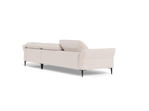 Salino is Italian inspired sophistication! This sofa offers manually adjustable head rests for each seat for additional neck support. The back and seat cushions are fixed. The arms have soft rounded shapes that contribute to the elegance of this sofa. The sofa is available with beautiful organic shaped black metal legs that fit the sofa perfectly.