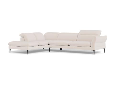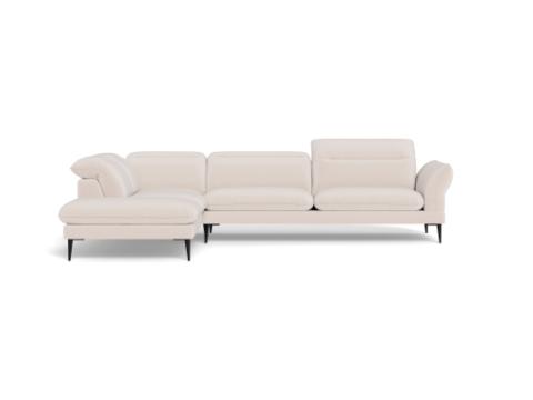 Salino is Italian inspired sophistication! This sofa offers manually adjustable head rests for each seat for additional neck support. The back and seat cushions are fixed. The arms have soft rounded shapes that contribute to the elegance of this sofa. The sofa is available with beautiful organic shaped black metal legs that fit the sofa perfectly.