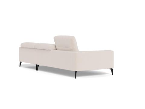 Voluzzi is Italian inspired sophistication. This sofa offers manually adjustable head rests for each seat for additional neck support. The back and seat cushions are fixed. The back cushions are made with hyper-soft foam and cut with special 3D technology to achieve the best comfort and durability. The arms have soft rounded shapes that contribute to the elegance of this sofa. We offer optional lumbar cushions for even more support. The Voluzzi sofa has beautiful organic shaped black metal legs.