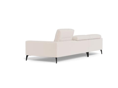Voluzzi is Italian inspired sophistication. This sofa offers manually adjustable head rests for each seat for additional neck support. The back and seat cushions are fixed. The back cushions are made with hyper-soft foam and cut with special 3D technology to achieve the best comfort and durability. The arms have soft rounded shapes that contribute to the elegance of this sofa. We offer optional lumbar cushions for even more support. The Voluzzi sofa has beautiful organic shaped black metal legs.