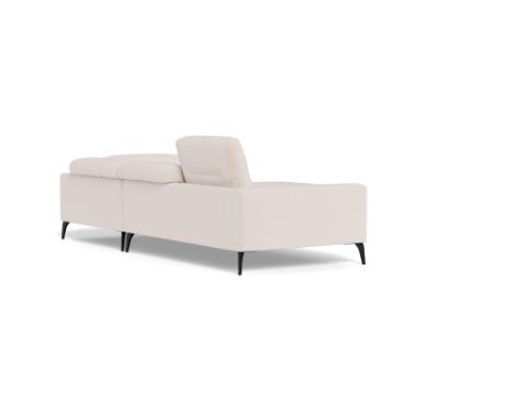 Voluzzi is Italian inspired sophistication. This sofa offers manually adjustable head rests for each seat for additional neck support. The back and seat cushions are fixed. The back cushions are made with hyper-soft foam and cut with special 3D technology to achieve the best comfort and durability. The arms have soft rounded shapes that contribute to the elegance of this sofa. We offer optional lumbar cushions for even more support. The Voluzzi sofa has beautiful organic shaped black metal legs.