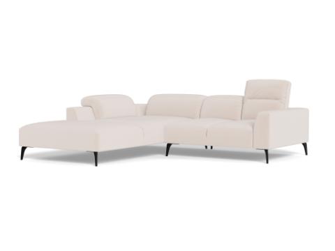 Voluzzi is Italian inspired sophistication. This sofa offers manually adjustable head rests for each seat for additional neck support. The back and seat cushions are fixed. The back cushions are made with hyper-soft foam and cut with special 3D technology to achieve the best comfort and durability. The arms have soft rounded shapes that contribute to the elegance of this sofa. We offer optional lumbar cushions for even more support. The Voluzzi sofa has beautiful organic shaped black metal legs.